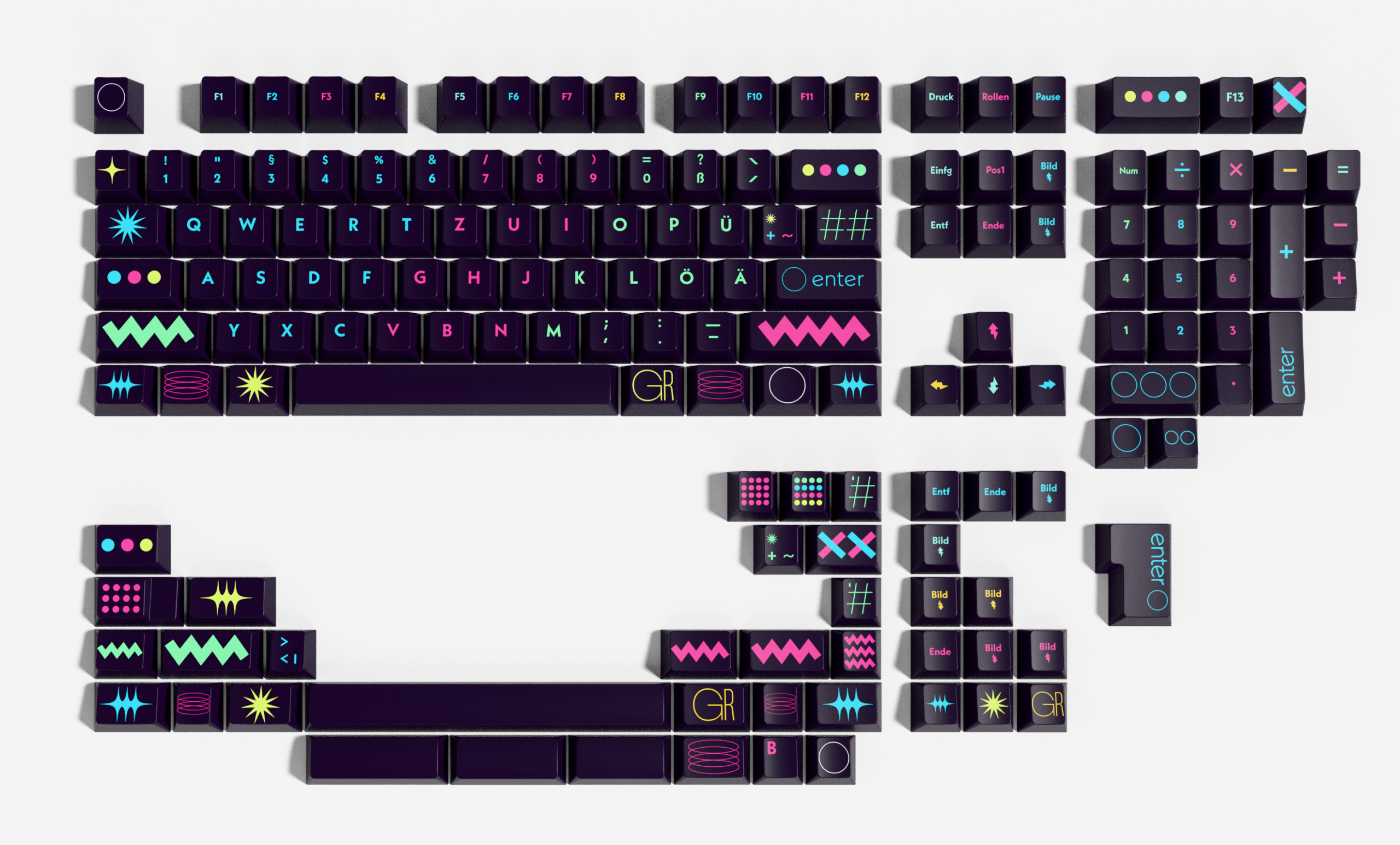 Das Set beinhaltet Elemente verschiedenster Designstile. Zu nennen wäre das italienische Memphis-Design, etwas Cyberpunk/Vaporwave steckt auch drin, und das knallige Neon erinnert an die 80/90er-Jahre des letzten Jahrtausends. Dazu kommt der verspielte Look, in dem auch die knallbunte Farbpalette der Kipo-Serie angesiedelt ist. Ein bisschen Arcane (die League-of-Legends Netflix-Serie) findet sich ebenfalls wieder. Ein wilder, bunter, lauter Mix, also.